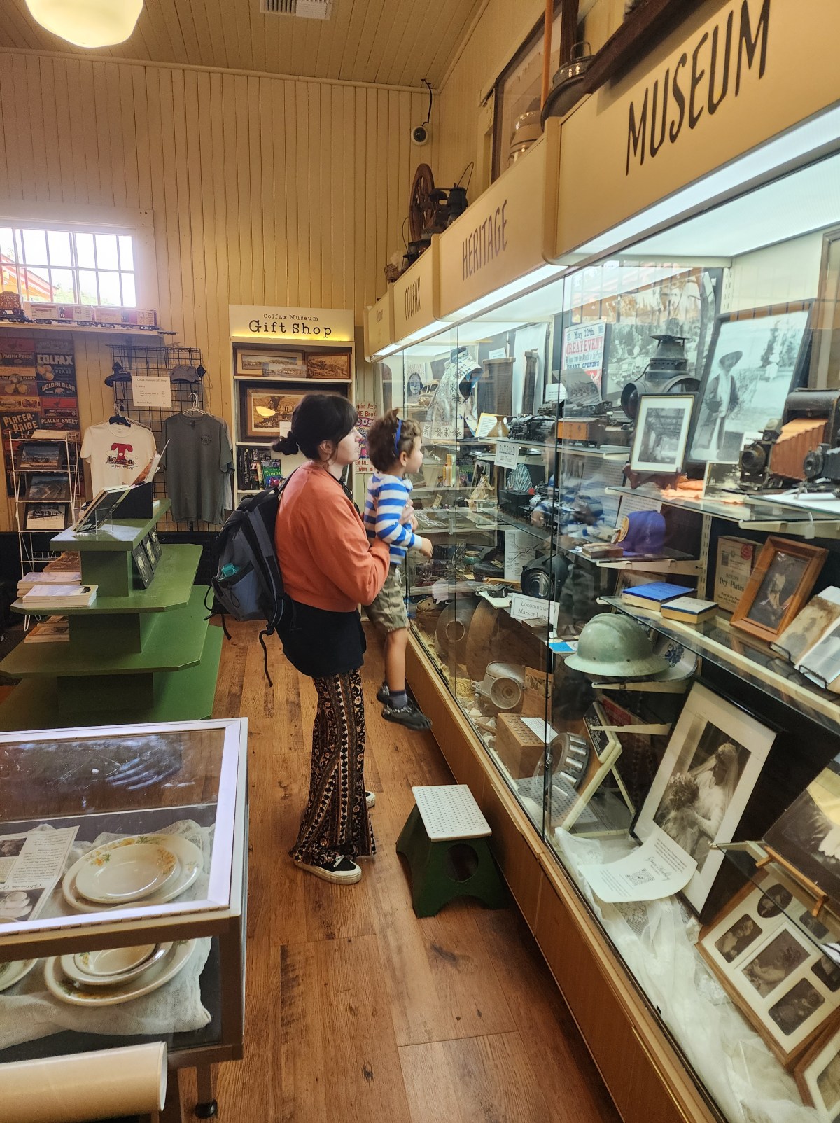Books about local history, train memorabilia, T-shirts, and other gift items are for sale.
