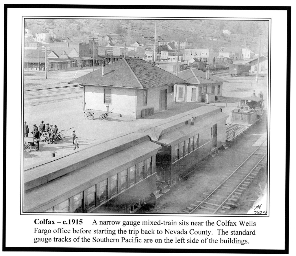 One of the Colfax Heritage Museum’s photo exhibits is of the Nevada County Narrow Gauge Railroad. The NCNG Railroad ran between Nevada County and Colfax from 1876-1943. The photos are displayed on the walls of the meeting room in the in the Colfax Passenger Depot, and are shown below.